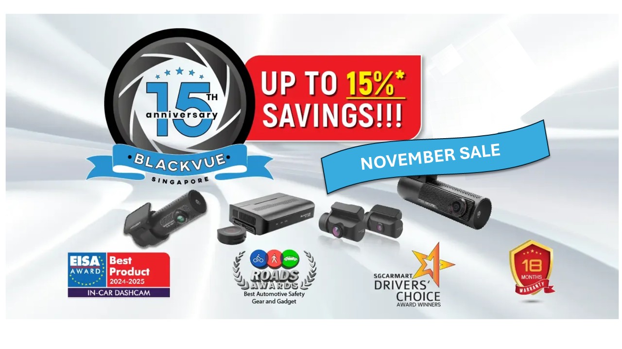 From groundbreaking dashcam innovations to industry recognition and the loyalty of our amazing customers — we’re proud to mark this 15th Anniversary together. With multiple awards under our belt and countless milestones achieved, this celebration is all about you. It's even more meaningful as we join Singapore in commemorating 60 years of independence. As our way of saying thank you, enjoy up to 15% off dashcams and more during our exclusive Anniversary & November Sale!